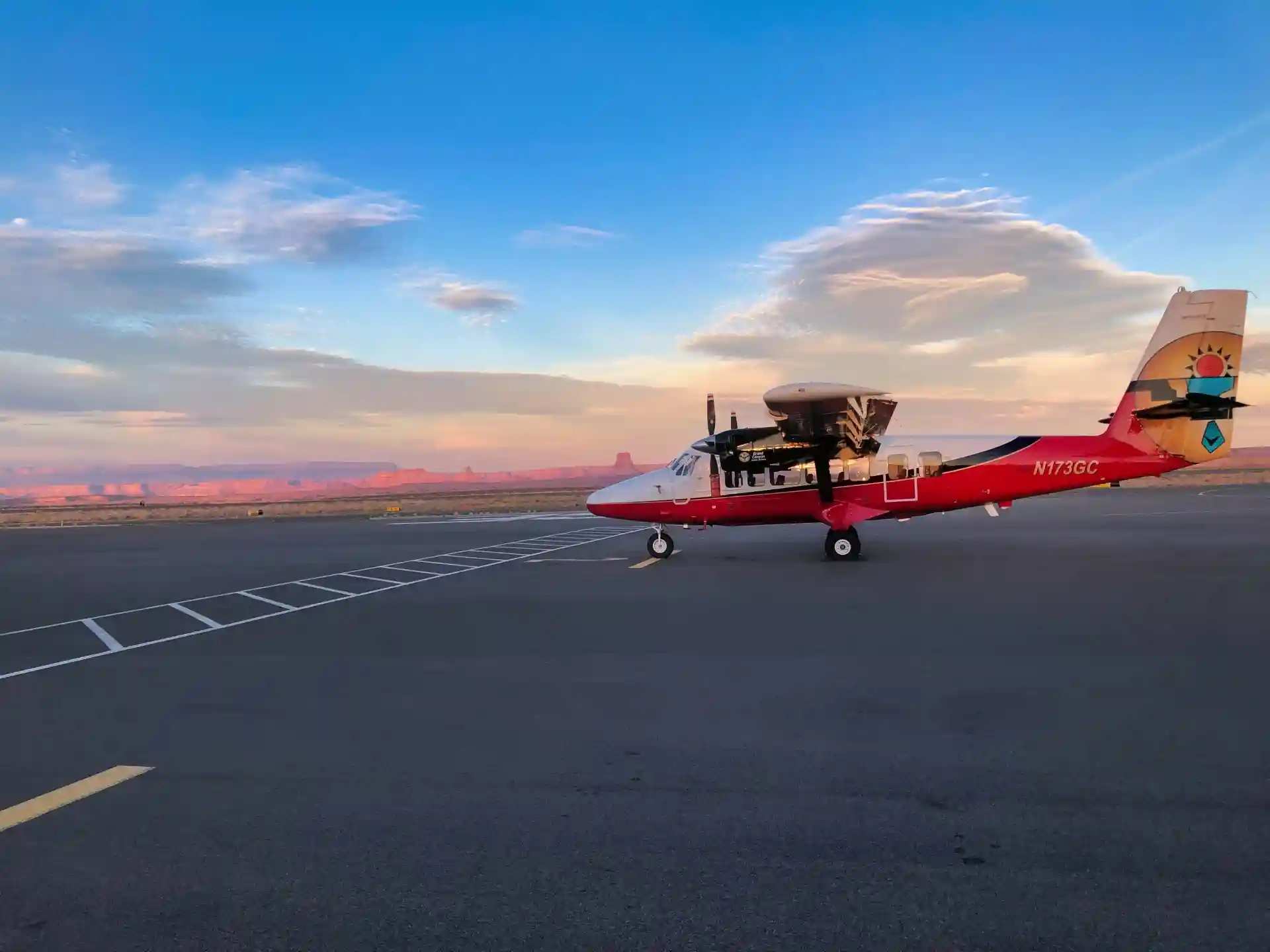 旅客須自行在航班時間的30分鐘或之前抵達在南峽谷機場,辦理登機手續後,搭乘配備舒適座椅、設有多語言耳機導覽及加大觀景窗的觀光小飛機,開始探索之旅。飛行途中可俯瞰壯觀的大峽谷的東面、凱巴布森林(Kaibab Forest)、蜿蜒的科羅拉多河(Colorado River)和閃耀的鮑威爾湖(Lake Powell)美景。